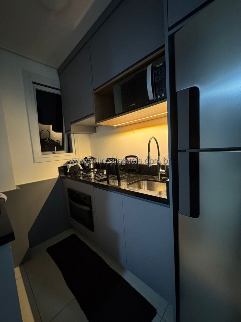 Apartamento com ar-condicionado na suíte, internet Wi-Fi, geladeira duplex, micro-ondas, máquina de lavar roupas, secadora, forno elétrico e camas box.