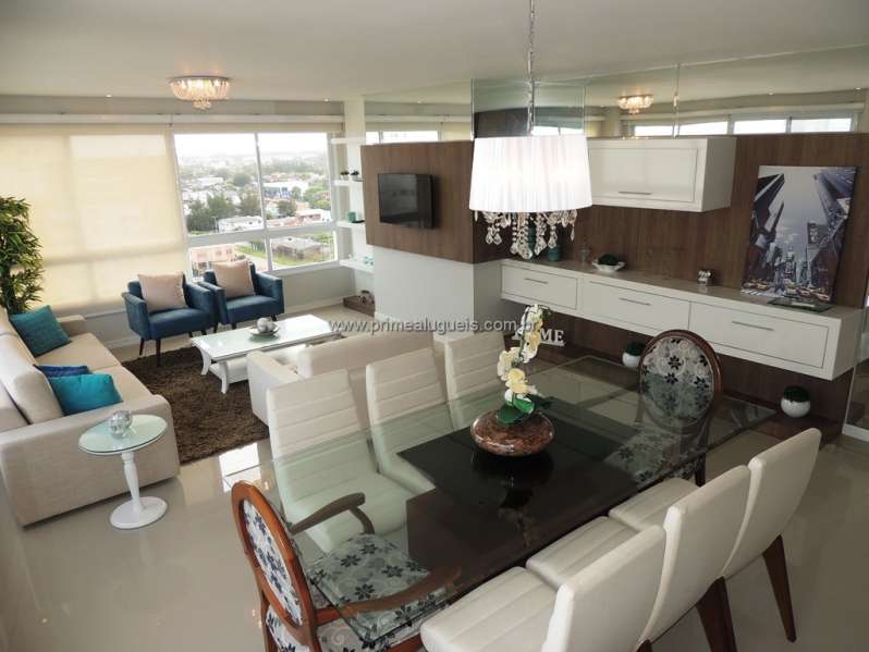 Aluguel de verão: Excelente apartamento, totalmente climatizado. Apartamento com 03 dormitórios (sendo 01 suite), banheiro social, lavabo, amplo living integrado a sacada com churrasqueira, cozinha, área de serviço e box de estacionamento para 02 carros. Apartamento com TV a cabo, internet wi-fi, geladeira duplex, micro-ondas, forno elétrico e máquina de lavar roupas.
