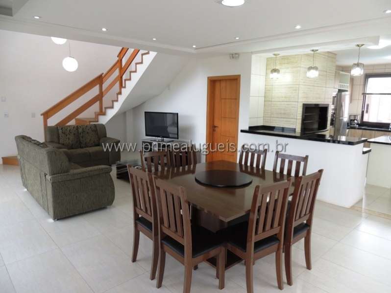 Aluguel de verão: Excelente sobrado em frente ao mar com piscina, 04 dormitórios (sendo 02 suítes), lavabo, banheiro social, living integrado a cozinha americana com churrasqueira, ampla sacada de frente para o mar, salão de festas com churrasqueira e mesa de jogos, pátio fechado e alarme monitorado. Casa com TV LCD 50" com SKY livre, ar-condicionado Split em 01 suíte, Internet com WI-FI, ventiladores de teto em todos os dormitórios, geladeira duplex, micro-ondas, forno elétrico, máquina de lavar roupas. Salão de festas com churrasqueira, mesa para churrasco, fogão de mesa, cervejeira, mesa de carteado, mesa de bilhar/ping-pong.